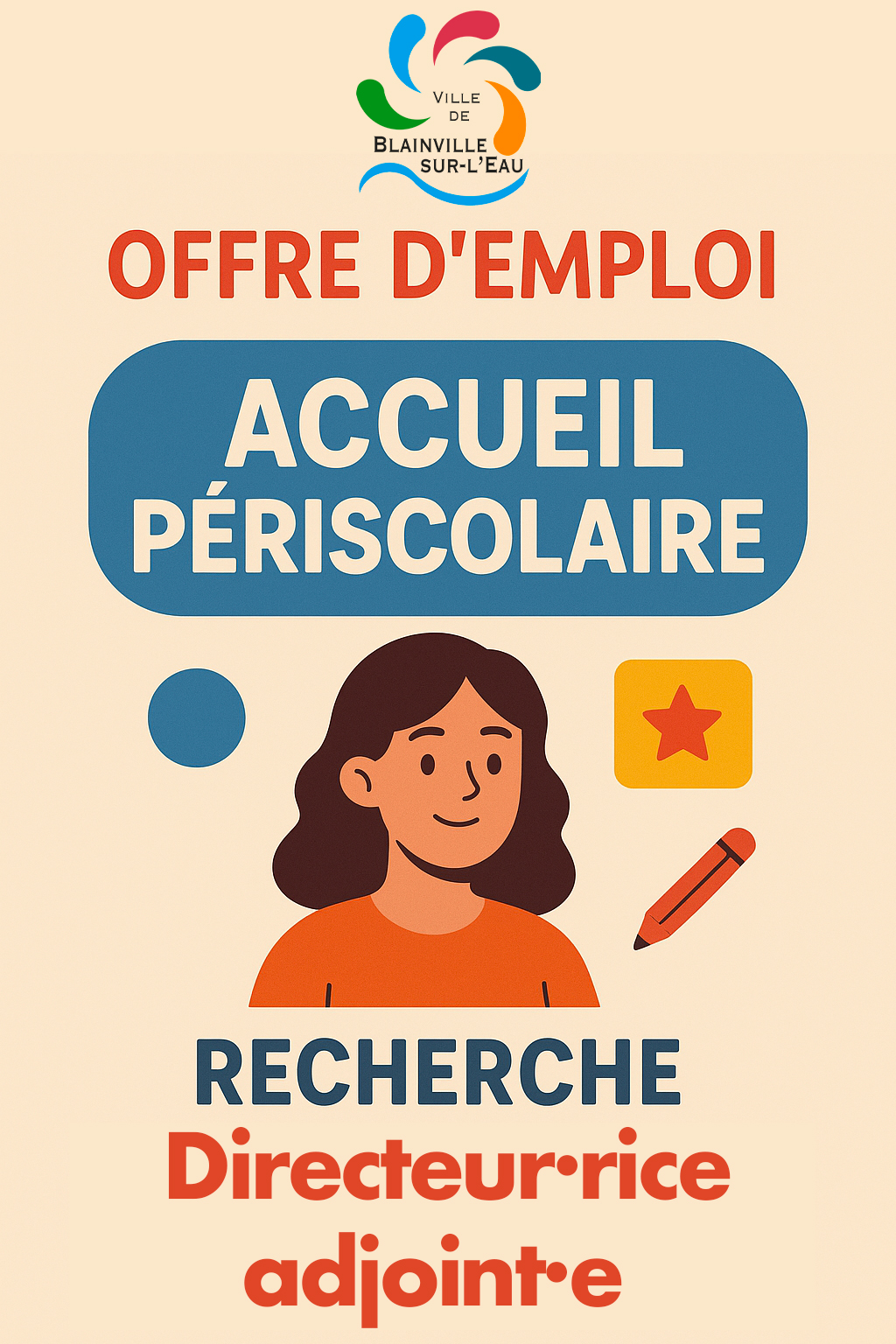 La ville de Blainville-sur-l'Eeau recrute ! Vous avez le sens du service public et l’envie d’accompagner les enfants dans leur épanouissement ? Rejoignez notre équipe en tant que Directeur·rice adjoint·e d’Accueil Collectif