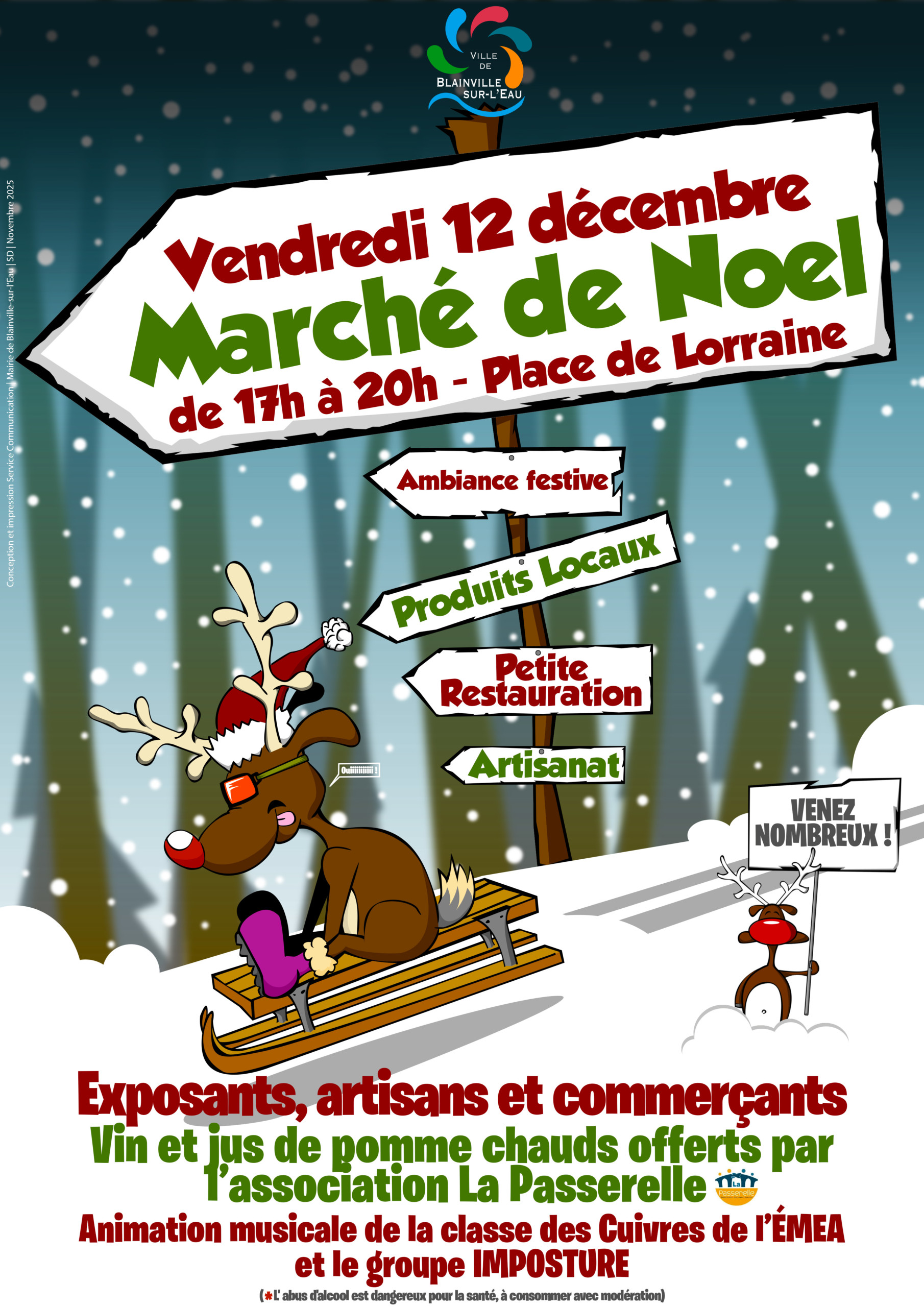 Vendredi 12 décembre, retrouvez notre Marché de Noël de 17h à 20h, Place de Lorraine, avec de nombreux artisans et exposants. Ambiance musicale avec la classe de cuivre de l’EMEA et le