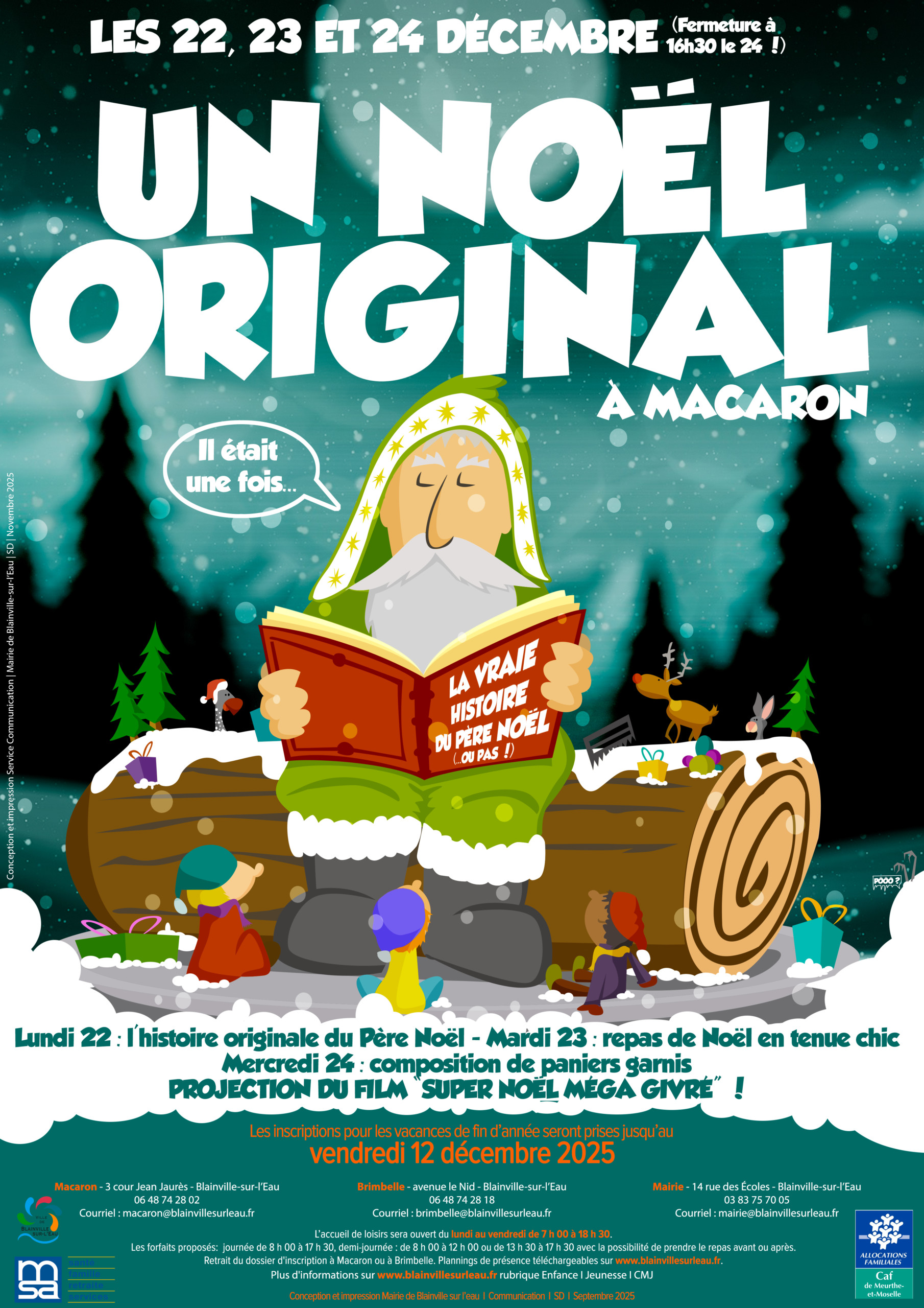 Un Noël original à Macaron, les 22, 23 et 24 décembre 2025 !! Tu connais la véritable histoire du Père Noël ? Non ? Alors vient la découvrir lors de ces trois