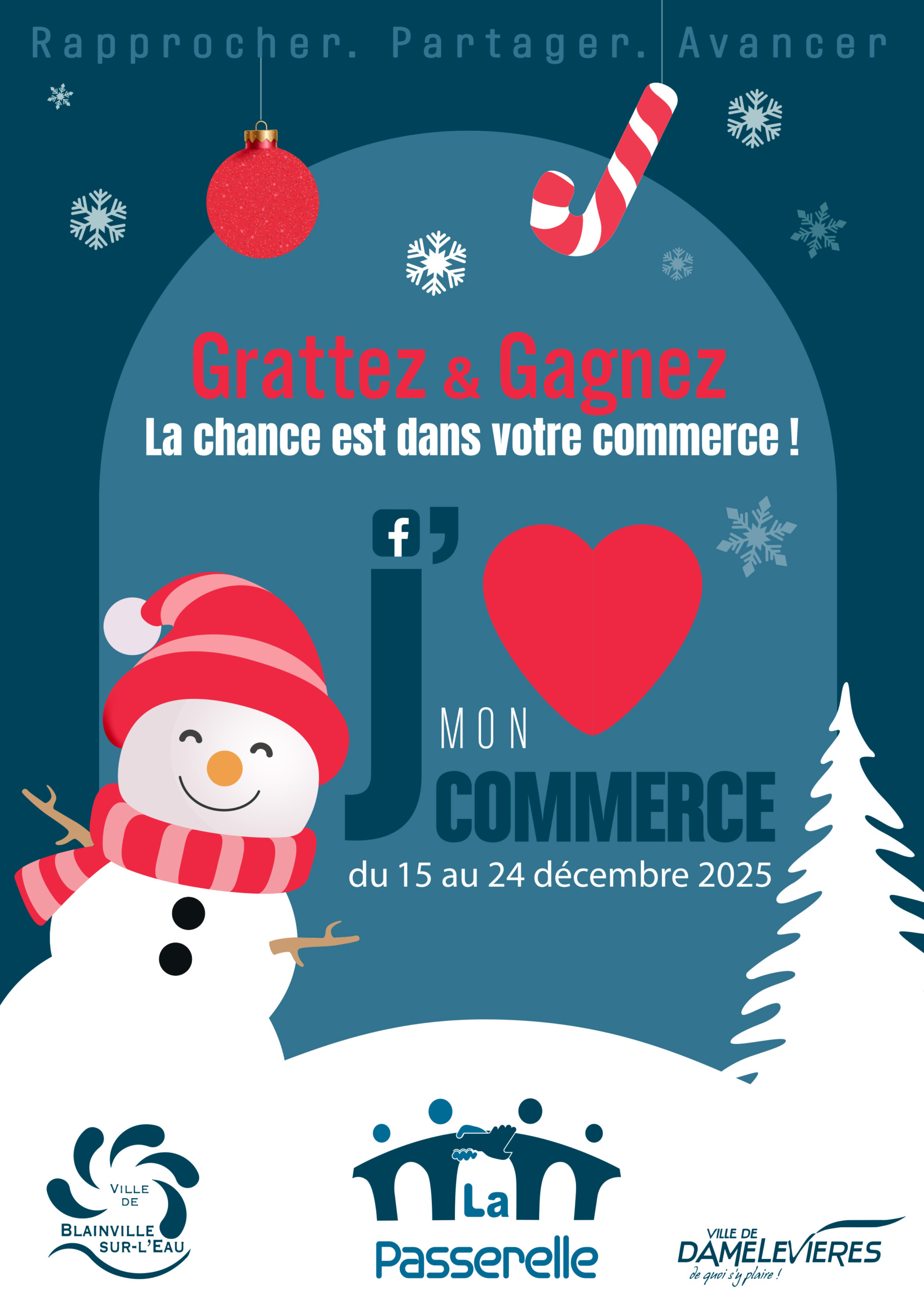 C'est le moment de Gratter & Gagner avec le Jeu de Noël de la Passerelle du 15 au 24 décembre 2025 ! Soutenez vos commerçants et tentez de remporter de superbes lots