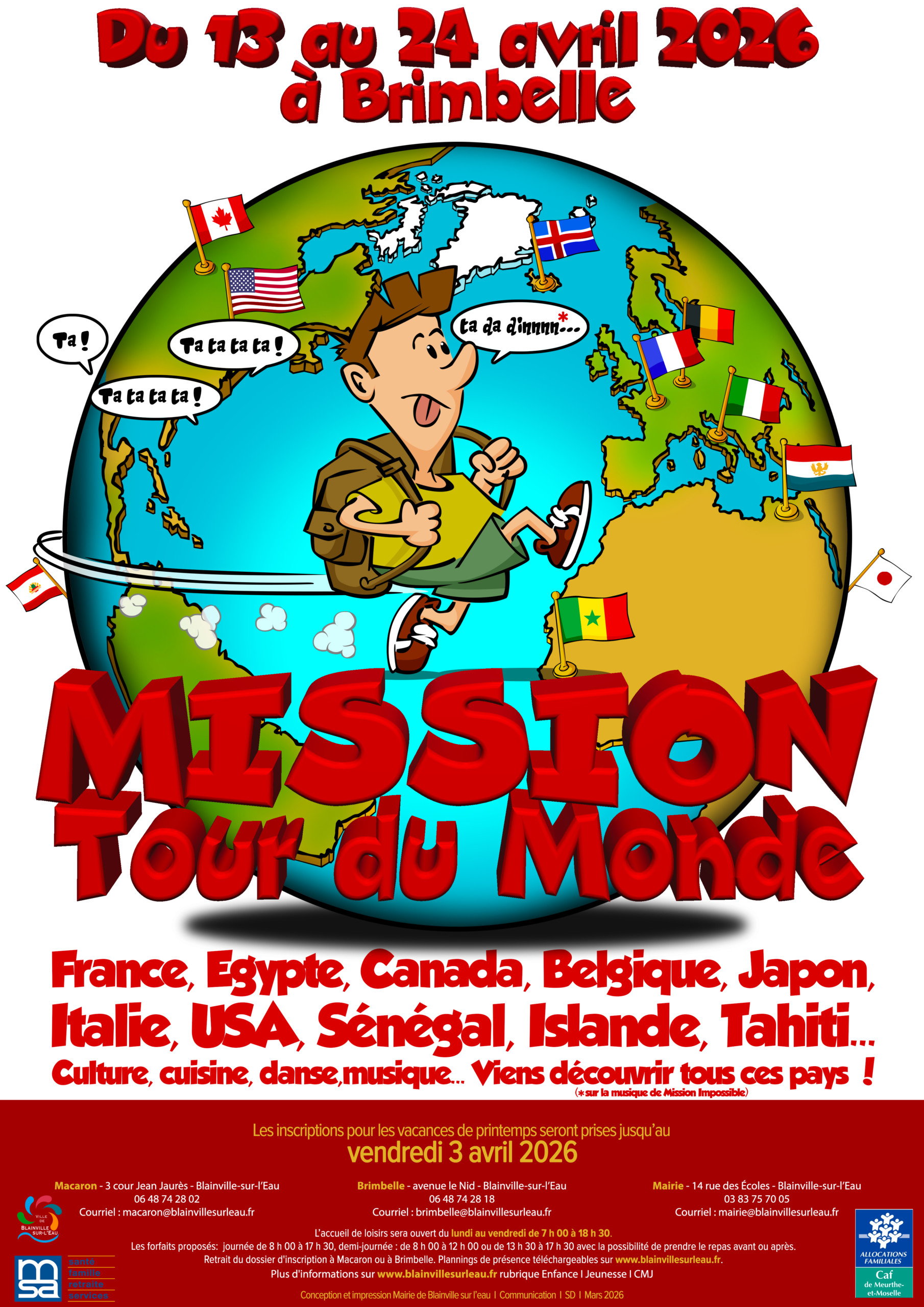 Envie de faire le tour du monde sans quitter Blainville-sur-l'Eau ? Viens passer tes vacances de printemps à Brimbelle du 13 au 24 avril 2026 et ce sera chose faite !!! 1