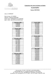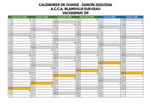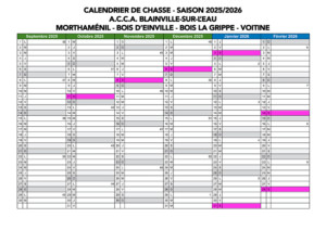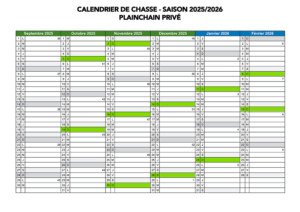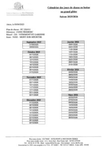 Les calendriers fournis sur cette page sont donnés par les Associations de Chasse.